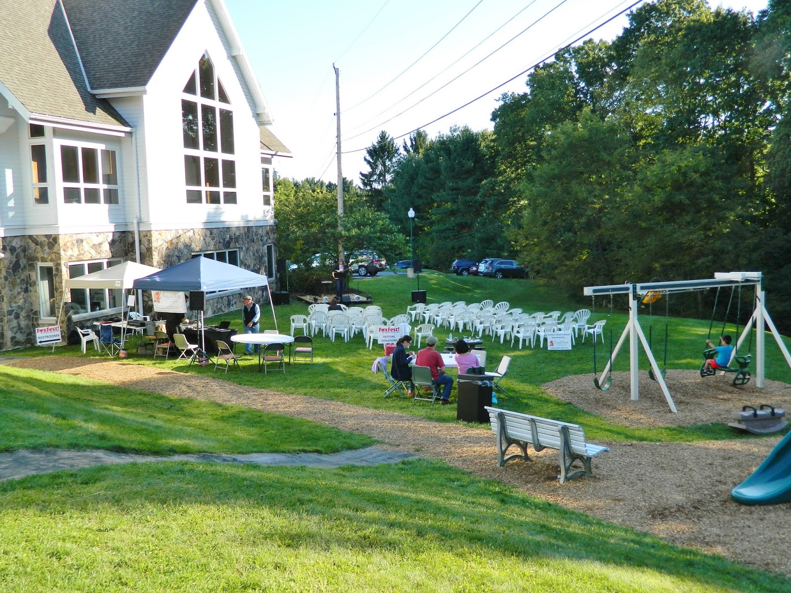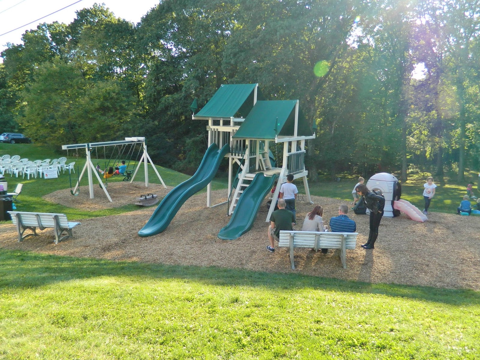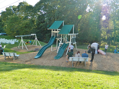 …as kids took advantage of church playsets…