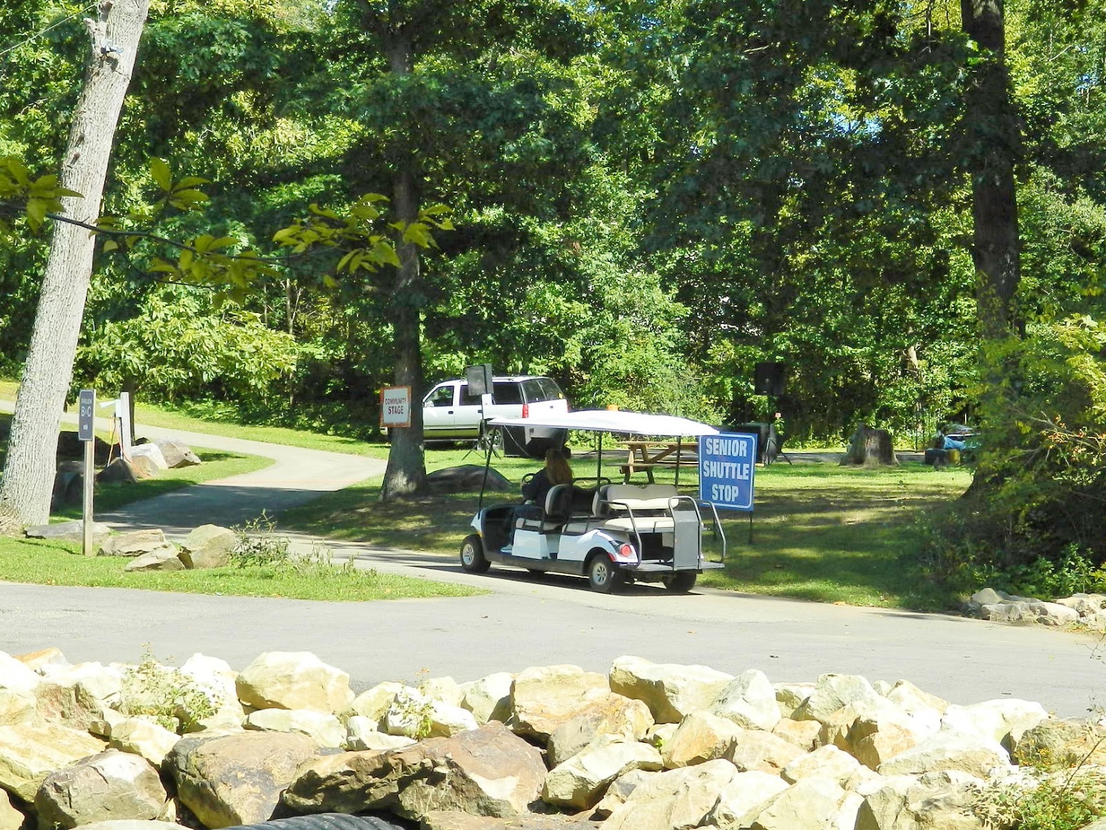After a free ride to the grounds, thanks to a volunteer in a golf cart…
