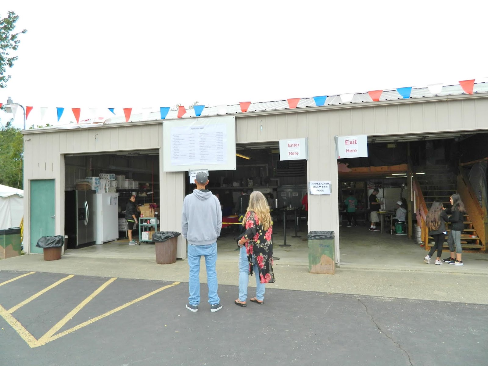 …with sandwiches, sides, and apple foods (apple butter, slices apples and caramel, apple cider)…